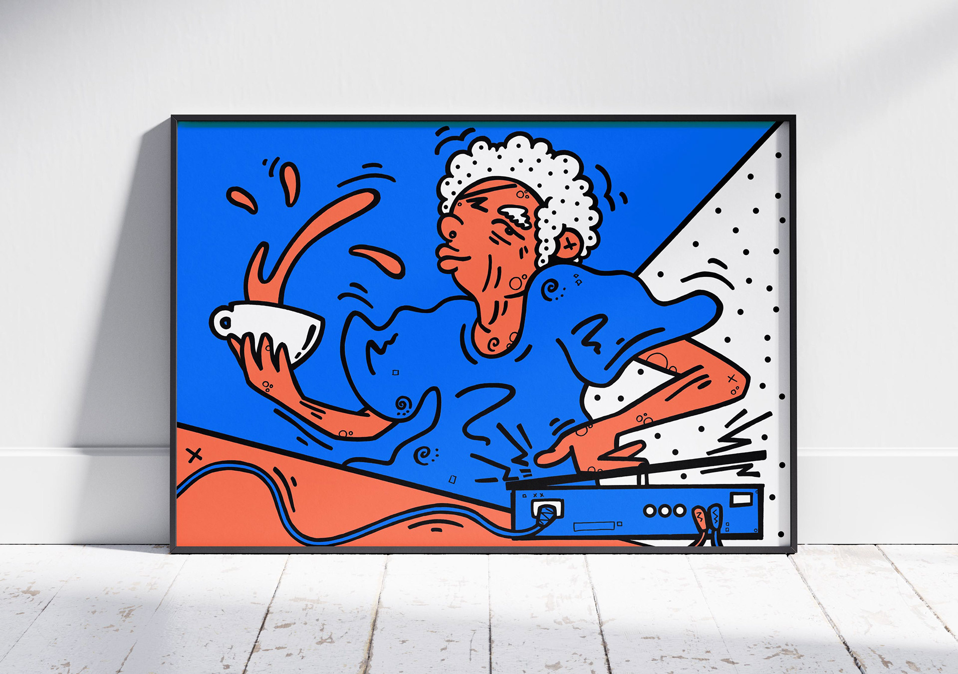 Wall illustration commissioned by local coffee shop Espresso Lane, created to reflect the client’s brief and personality within a bold, friendly visual style.