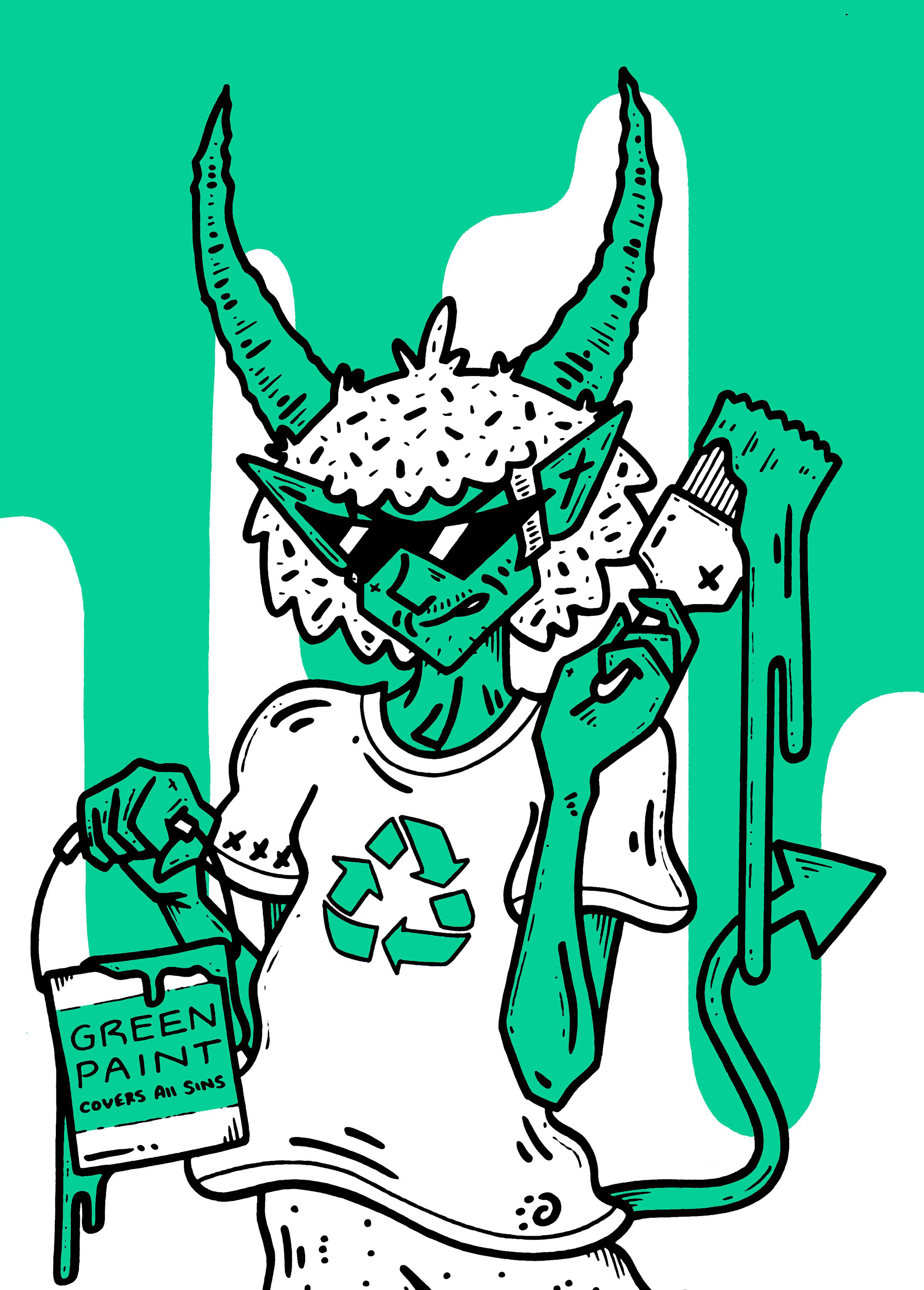 Editorial illustration created for Mad About Doin’ Magazine, accompanying an article examining the concept of greenwashing and its use in contemporary branding and messaging.